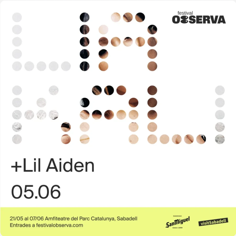 Lil Aiden actuará en el Festival Observa de Sabadell en una noche especial junto a Lia Kali en el Amfiteatre del Parc de Catalunya